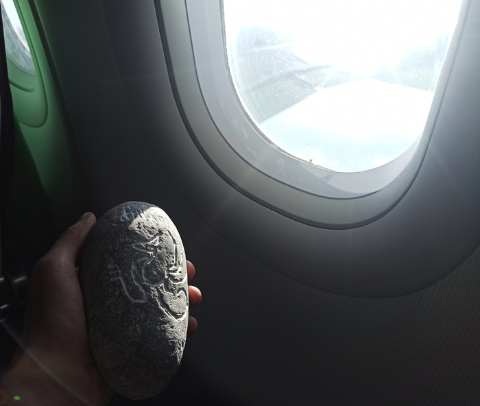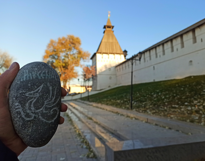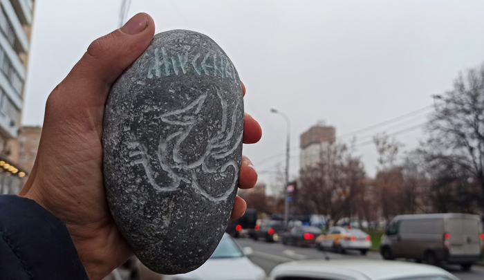 Таким образом, решил и я внести что-то примечательное в этот скучный засушливый край, а именно оставить там камень! Поскольку для Астрахани это настоящий дефицит, то нашел экземпляр посолидней, на котором вырезал как мог немного памятных знаков и повёз в путешествие: