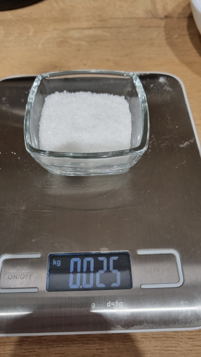 И соль - 25 грамм. (Добавьте 20 грамм и при необходимости посолите ещё, когда суп уже будет практически готов)