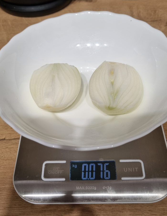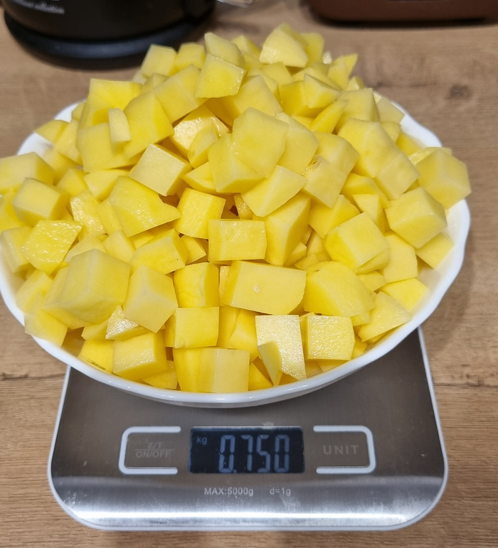 В него заряжаем картошку. Вес картофеля - 750 грамм.
