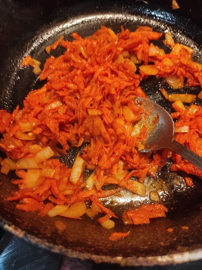 Как рыба начнёт закипать, снять пену (не заморачивайтесь особо, всё равно процеживать) и зажарку туда. Плюс лавровый лист и перца 5-7 горошин. На пару часов на медленном огне (ритм такой: ммм, допустим, бульк, помните, да?) оставьте бульон на плите.