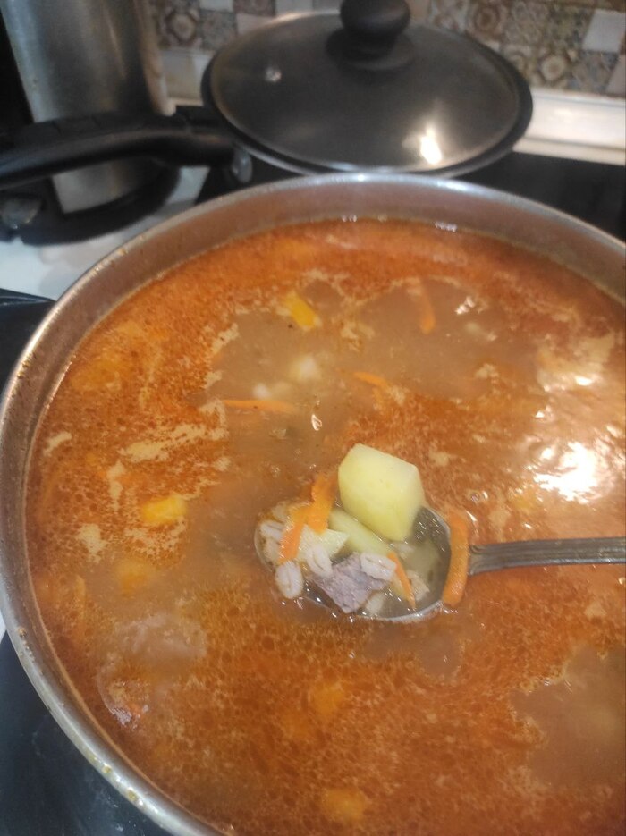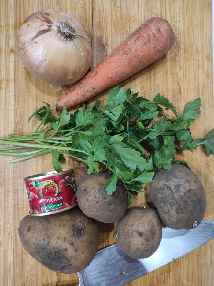 Всё это добро в кастрюлю, льем холодную воду - литра три. Ииии - поехали с корнеплодами.