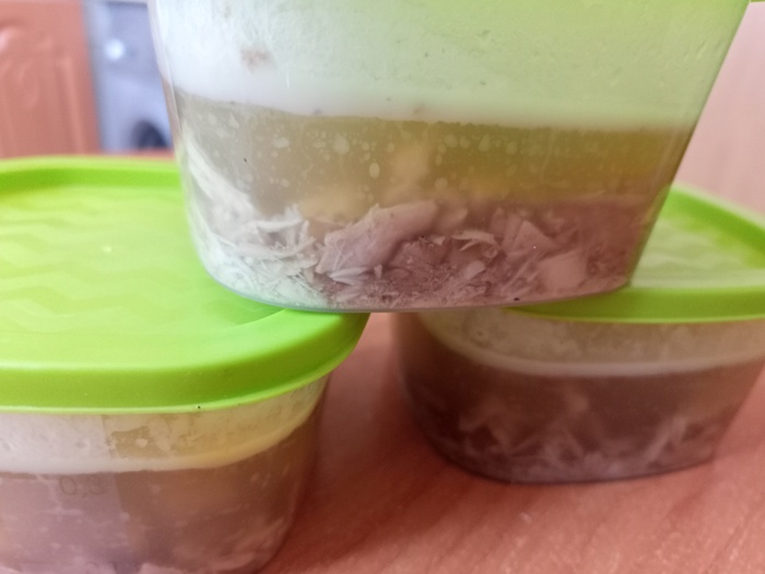 Меня не интересовала прозрачность бульона, поэтому вместо долгого выпаривания на минимальном огне, я экстрагировал из мяса всё что надо в скороварке за 40 минут, а потом уварил полученный бульон, примерно, вдвое на огне выше среднего ещё минут за 20.