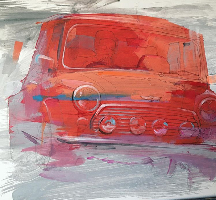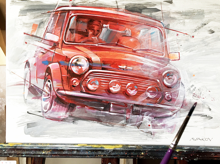 Изначально картина Mini Cooper написана акрилом на бумага, на фотках финальный результат и немного процесса...