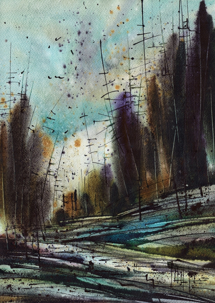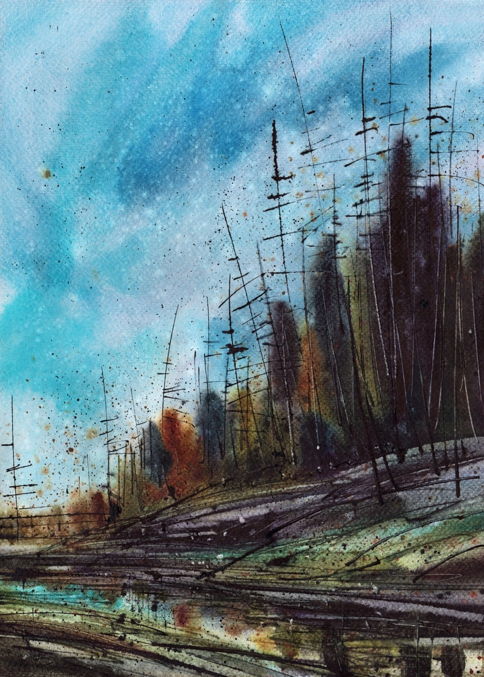 Чёрные башни... Акварель, акрил, бумага (300 гр.) 52/38 см.