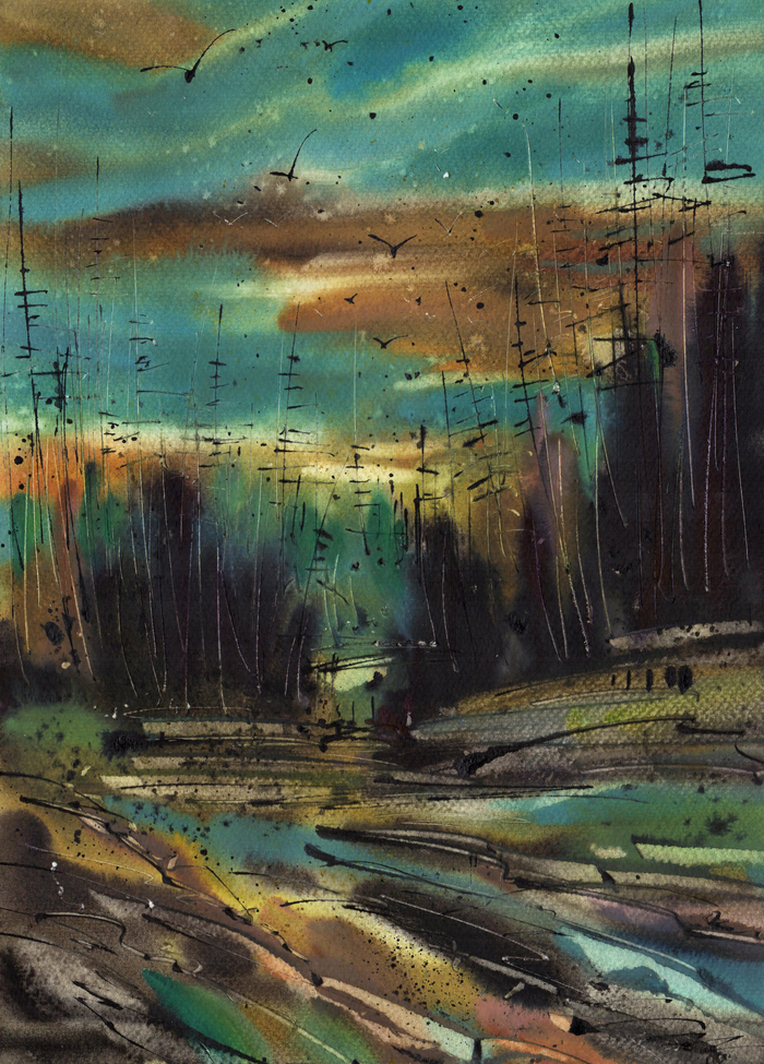 Движение нового дня... Акварель, акрил, бумага (300 гр. 100% хлопок) 56/38 см.