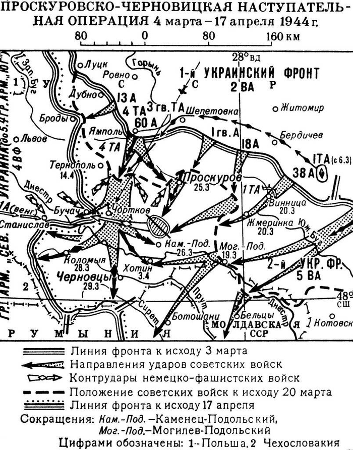 Здравствуйте Уважаемые читатели! В последние дни января 1944 года, пока немцы, скопив силы, деблокировали Корсуньский котел, в котором варилось 60 тысяч фашистов, кавалерия Красной армии скрытно вышла к Ровно и в первые дни февраля освободила этот город, взяв еще и важный узел дорог в Шепетовке, что привело к разрыву между группой армий "Юг" и "Центр". А дальше, не смотря на весну и половодье, 4 марта 1944 года с образованного выступа советские войска переходят в наступление. В образовавшийся практически сразу прорыв были введены части 4 ТА и 3 гв ТА, которые приступили к охвату противника. Понимая угрозу окружения, немцы практически сразу начинают реагировать. Тем не менее, советские части успевают преодолеть около 80 километров и перехватить дорогу Львов-Одесса на участке Тернополь-Проскуров. К этому моменту силы врага уже были на подходе, а это 9 танковых и 6 пехотных дивизий. Поэтому в этом районе разгорается встречное танковое сражение, а продвижение наших войск прекращается.