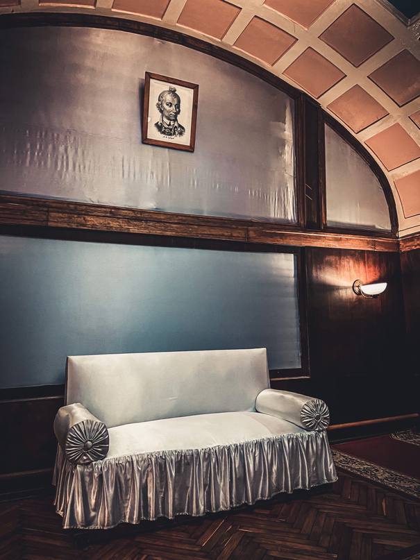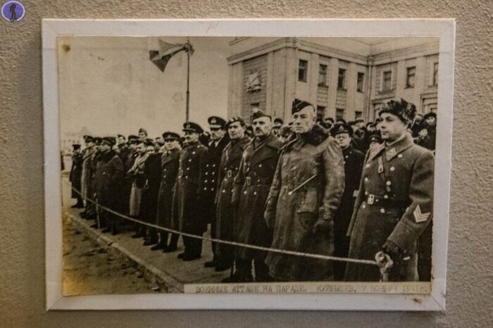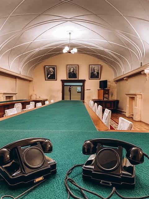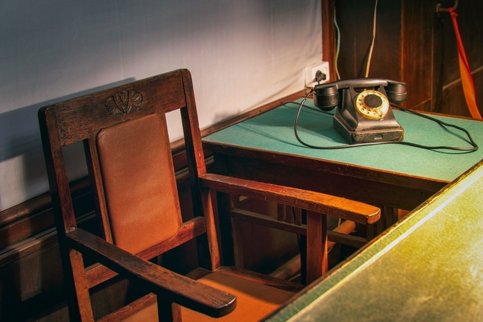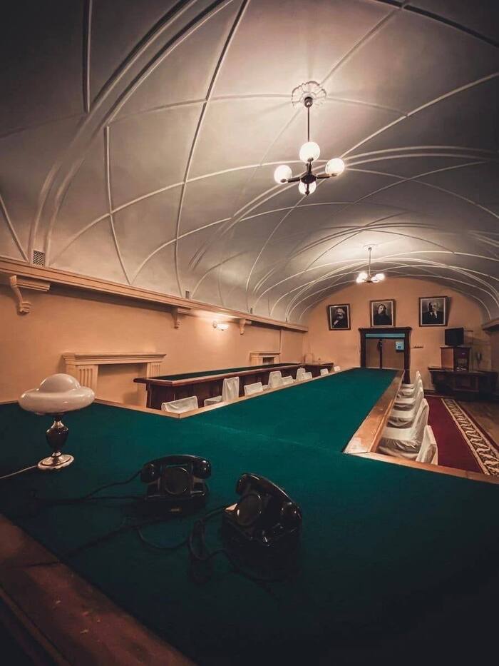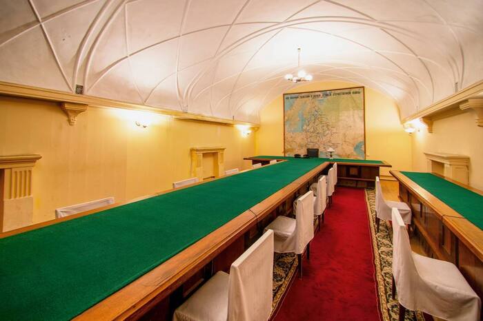 Самое захватывающее в экскурсии — это, пожалуй, начальный спуск по лестнице до верхнего технического этажа (восьмой этаж), откуда и начинается осмотр бункера. Дальше только вниз. Именно здесь становится ясно, что вы уже в бомбоубежище: вокруг чугун, тусклый свет, слова эхом отскакивают от стен, а шаги по лестнице звучат гулко. Однако тревожная атмосфера исчезает, когда вы оказываетесь на «жилых» этажах. Они создают ощущение обычного административного здания советского периода, только без окон. В какой-то момент вы даже забываете, что находитесь глубоко под землей.