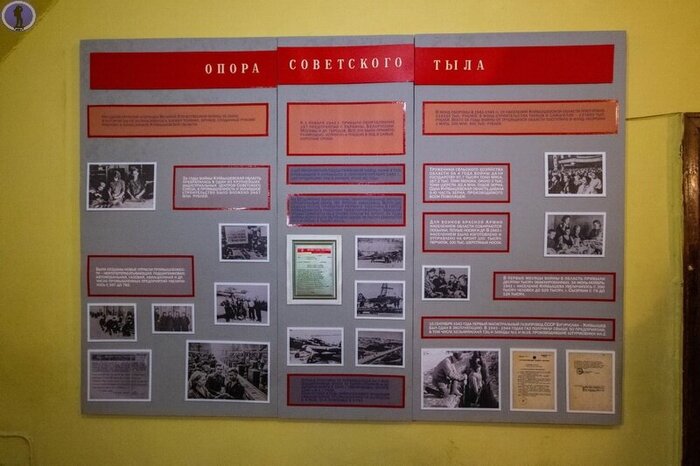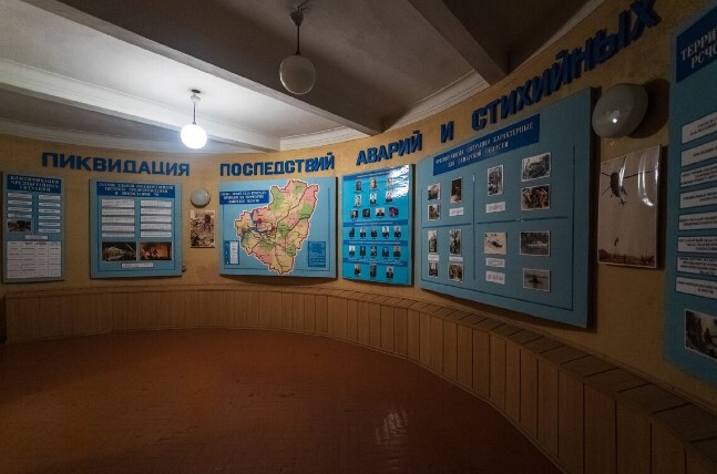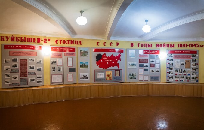 Спускаемся ещё ниже и попадаем в зал истории местной противовоздушной обороны. Затем нас ждёт комната, где на стендах представлены материалы по ликвидации последствий аварий, катастроф и стихийных бедствий. Следующая комната посвящена вопросам защиты населения. Поднявшись на следующий этаж, мы узнаем о жизни в Куйбышеве во время эвакуации правительства, заводов и дипломатов.