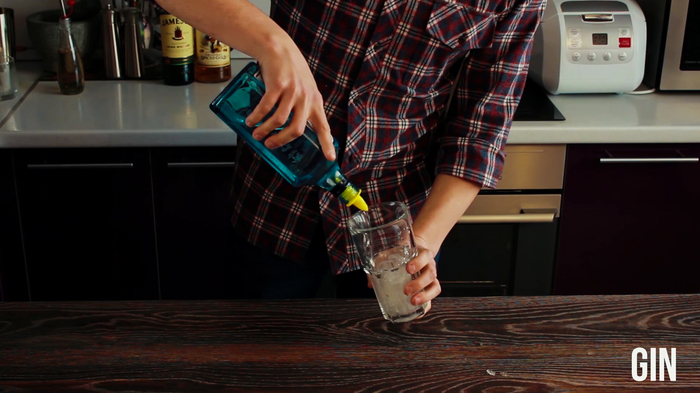 1. Налейте в смесительный стакан джин и лаймовый кордиал.