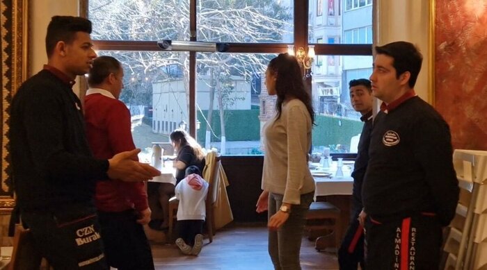 Ресторан большой, и удивительно, что когда мы пришли, персонала было намного больше, чем гостей. У столика, за которым мы сидели, был просто шикарный вид. После многолюдной улицы Истикляль - это то, что нужно.