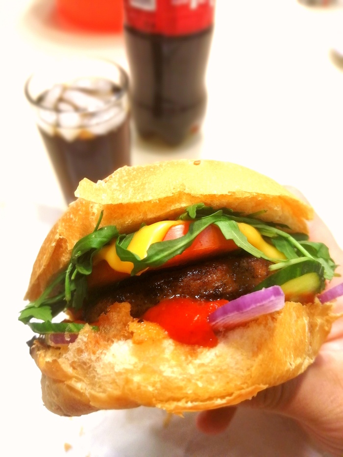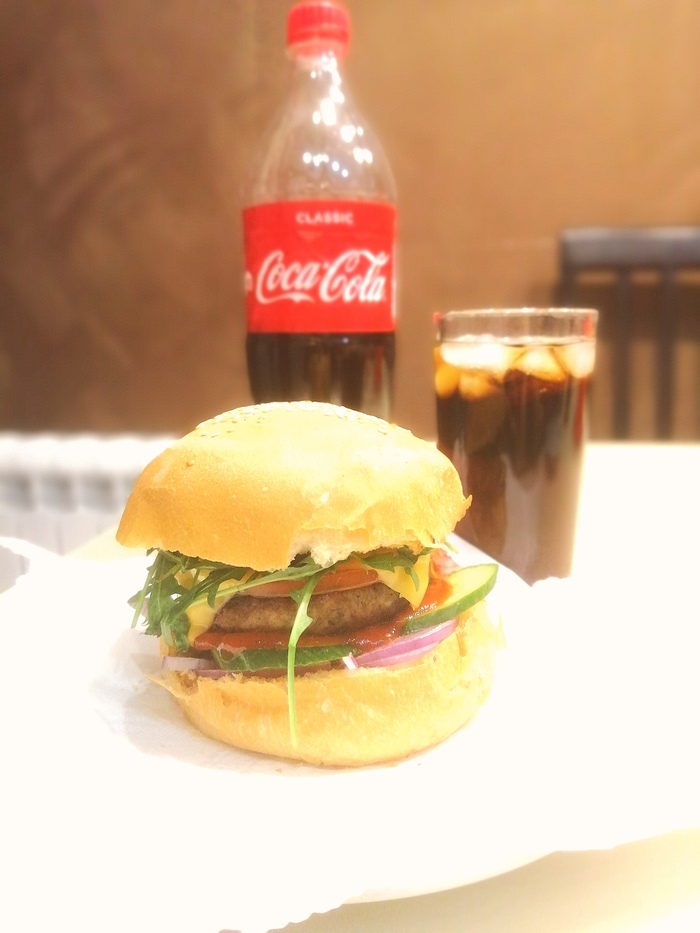 И вот он уже готов. Стаканчик колы со льдом тоже на месте.