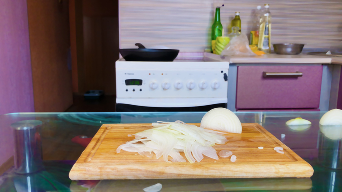 Бургеры очень быстрые в приготовлении, поэтому начинаем сразу с лука.
