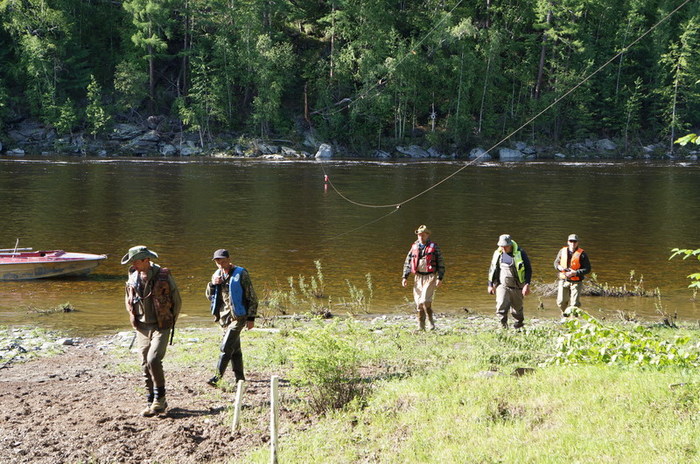 Поясню про моторы. Оставшиеся 120 км предстояло пройти по широкой, и не такой быстрой, как верховьях, Бурее. Изрядно намахавшись веслом в прошлом году на этом участке, Парфён на этот год предусмотрительно взял собой два мотора по 3,5 лс. Изготовлению и монтажу транцев на каты и была посвящена добрая половина днёвки на кордоне. Вода на глазах падает обнажая косу и хорошее уловцо за ней.