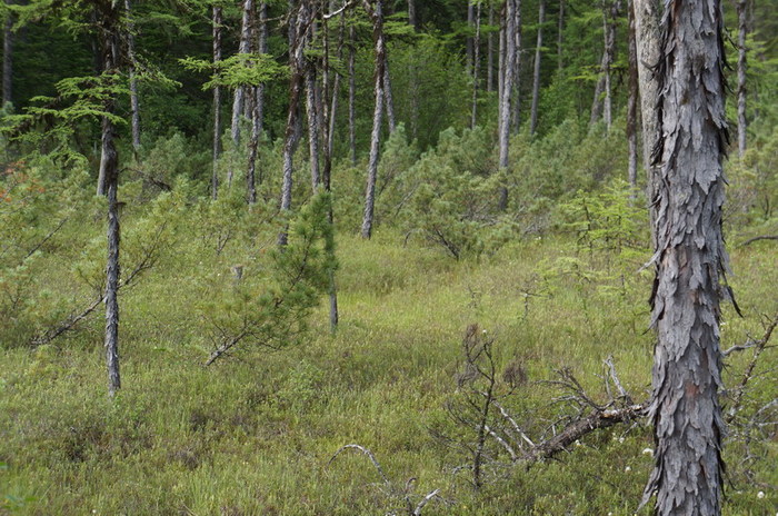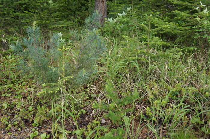 спереди листвинничка, дальше ёлочка и кедровый стланик, справа пихточка.