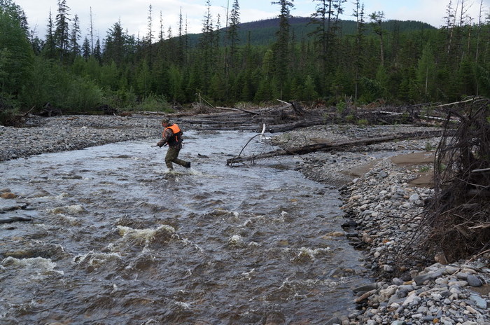 По словам Серёги, ниже кордона есть ключик. Отправляемся с Саней туда рыбачить. «Ключик» представлял из себя речку метров 20 шириной, вполне пригодную для сплава.