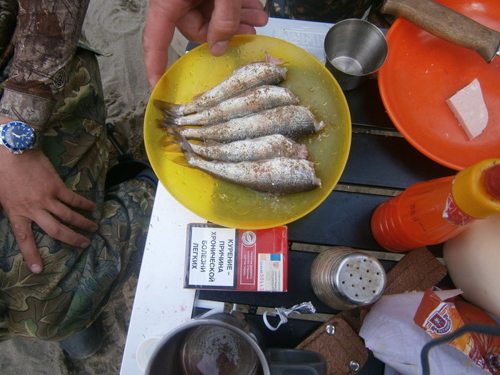 Что ни говори, а поплавочка на таких реках на порядок уловестей спиннинга (имхо). Но всё равно, не моё это, не моё. На ужин варим первую и последнюю уху на сплаве. Проставляюсь. Мужики особо не возражают.