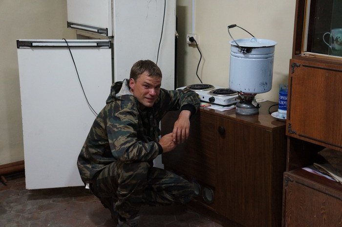 Серёга кашу ест, но фотографироваться отказывается: боится что компромат попадёт в сеть.)))