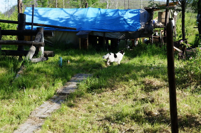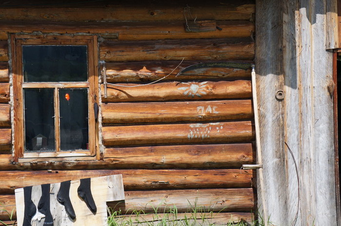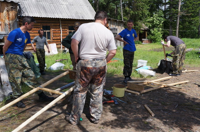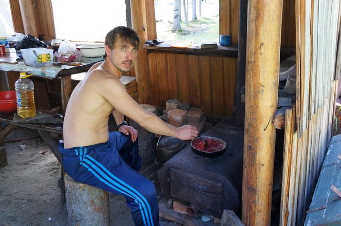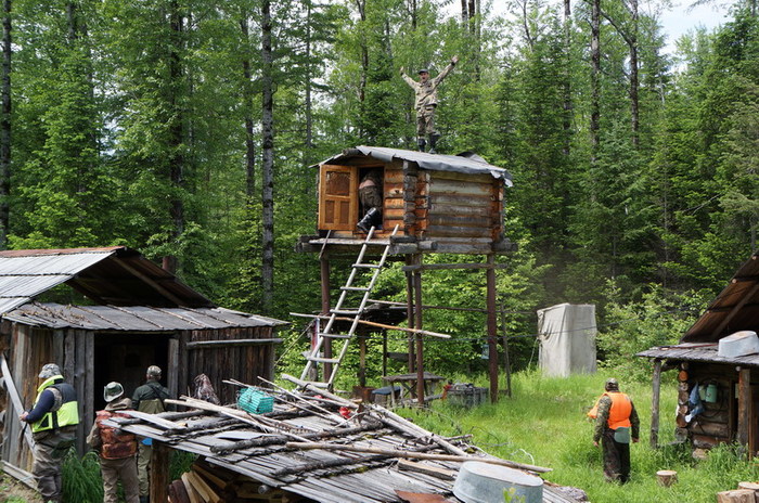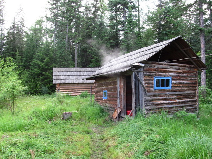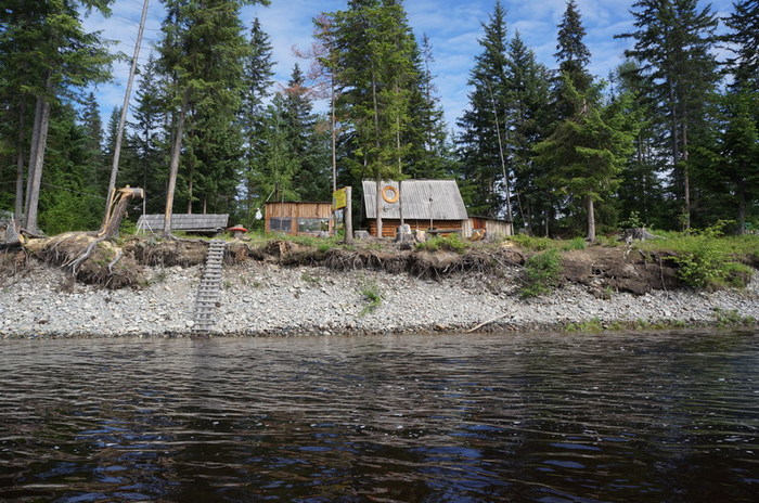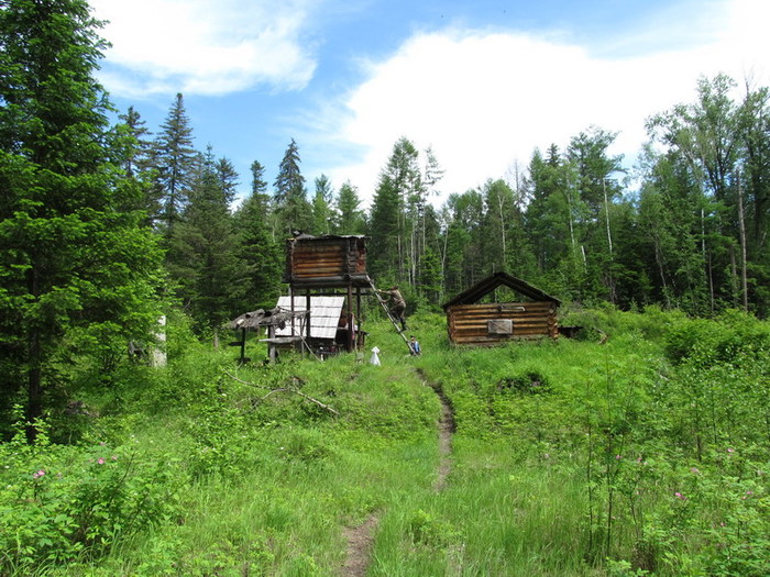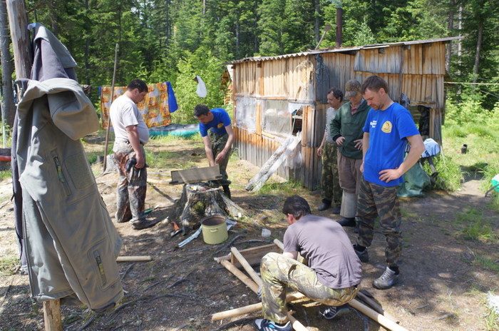 С осени он уходит сюда на свой участок промышлять соболя. Всех проезжающих мимо эко туристов, Серёга нещадно эксплуатирует. В прошлом году команда Парфёна садила картошку, в этом ремонтировали крышу лабаза и перетаскивали лодку.