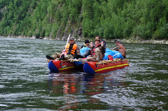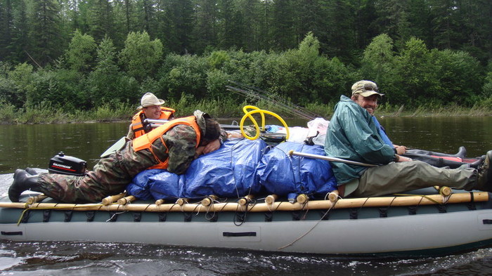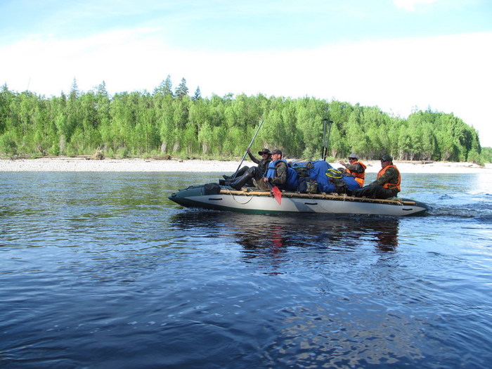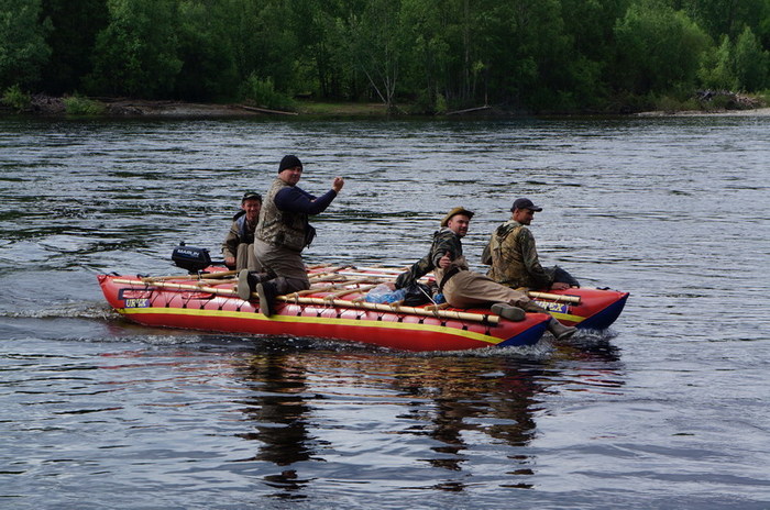 Течение реки 10 км, моторы дают прирост ещё на 5, идём довольно неплохо, и про вёсла постепенно забываем.