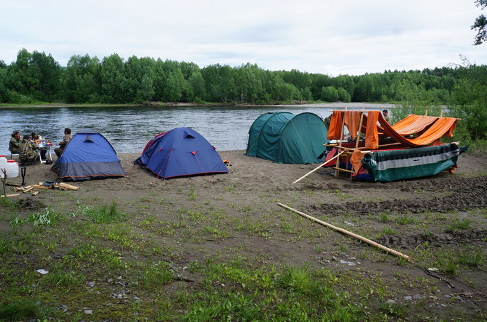 Хотя, если подойти к этому философически: жрать захочешь, ещё не так раскорячишься. Капитан парома, эвенк Мамука , рад нашему соседству. Жерди от рам, баннер, драный полог: столько добра он ещё ни от кого не получал. Выпрашивает у нас кусок лески и пару воблеров : «Однако привяжу к парому, тролинг будет. Мамука тоже рыбак» . Ночью, конечно же, идёт дождь.