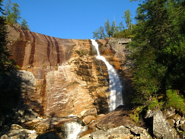Но все наши усилия тщетны. Рыб отсутствует как класс. Зато окружающая природа радует глаз. С высоких берегов стекают «ледяные» ручьи