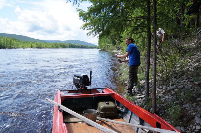 На всех интересных местах, будь то ямы, или перекаты, или заливчики, тормозимся для рыбалки.