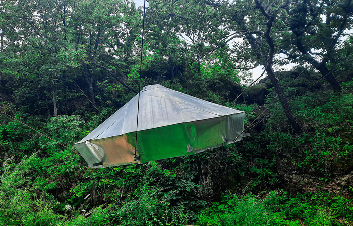 Базу создал своими собственными руками Владимир Пинегин, благодаря программе Дальневосточный гектар. Причем собственными руками в прямом смысле этого слова. Хозяин базы, в прошлом промышленный альпинист, сам строил все домики и подвесные мосты, не смотря на свой преклонный возраст 71 год.