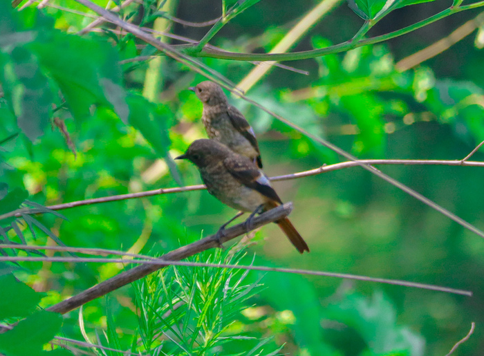Вот таких птахи живут в лесу, интернет говорит что это Горихвостки.