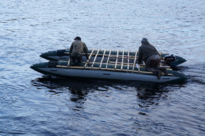 и в путь. Серёгину лодку сдуваем, и водружаем его самого на 1-й кат.