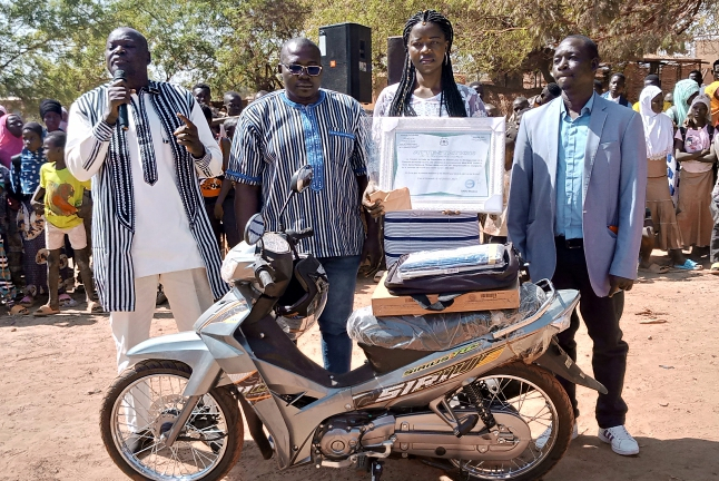 В одном из муниципалитетов страны наградили лучших учеников и учителей по итогам прошлого года. На фото: Луиза Саре, учитель года муниципалитета Хунде. Ей подарили мопед, ноутбук и традиционную набедренную повязку.