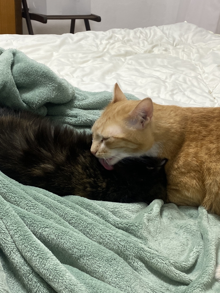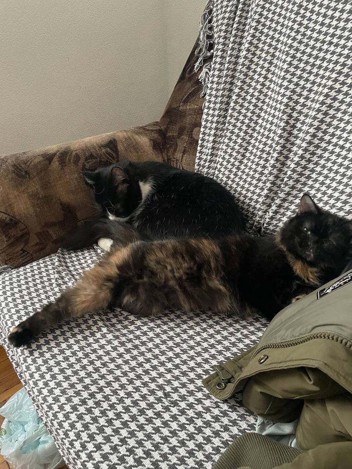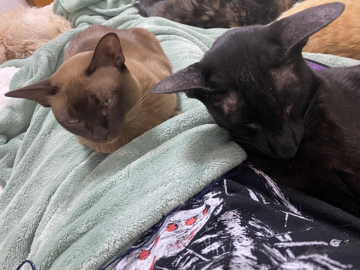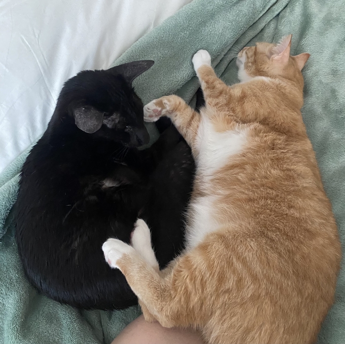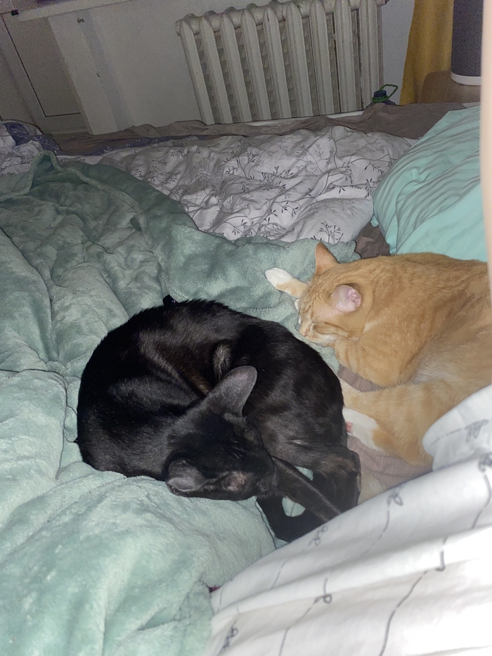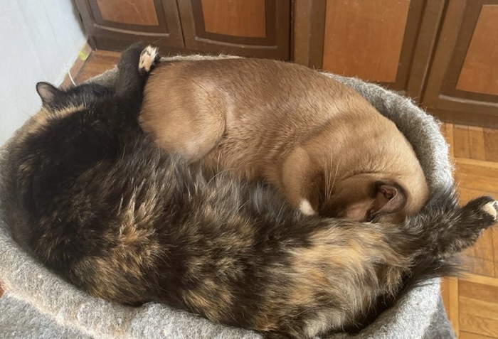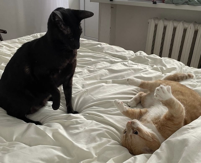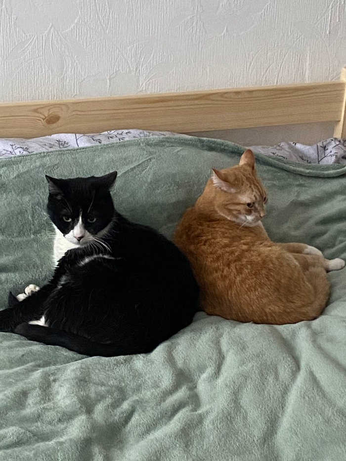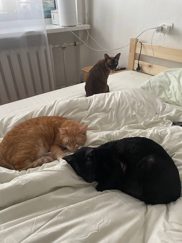 Несколько месяцев назад съехались с парнем. Очень переживала, так как изначально у меня было три кота помоложе, у него два кота постарше. Первое время было сложным, мы радовались каждому моменту, когда они находились рядом и не психовали, и у нас появилось что-то вроде хобби - фоткать пары котов в разных комбинациях и радостно скидывать друг другу. Сейчас уже все хорошо, коты образовали общее стадо и дружат там периодически разными группами в разных направлениях.