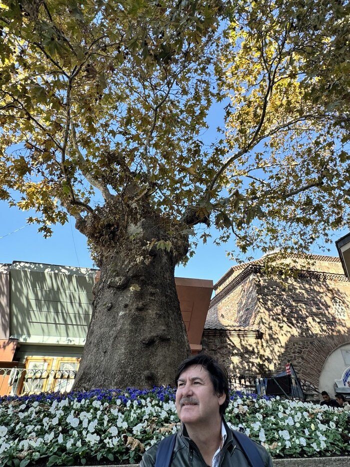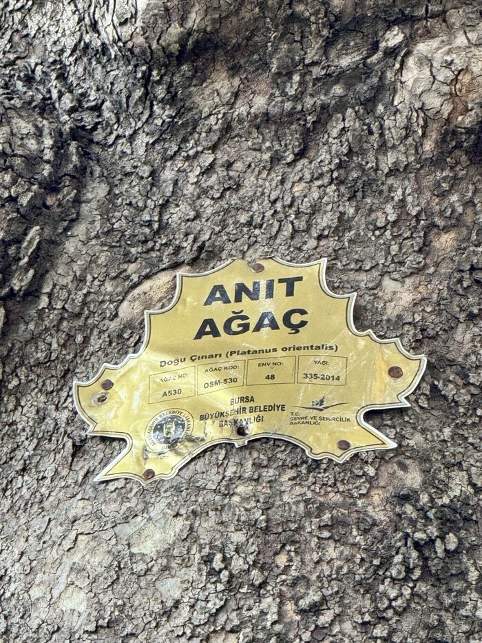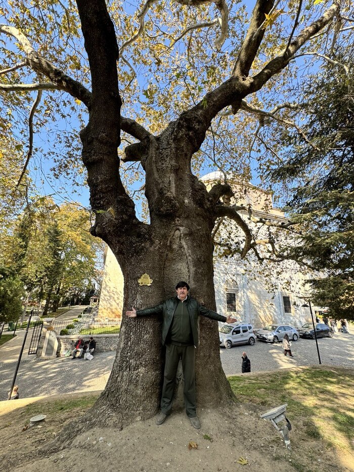 А это — главная знаменитость города (после Искендер-кебаба). Платан Инкая. Ему более 600 лет! Дерево настолько огромное, что под его ветками помещается целое кафе. У каждого такого гиганта есть свой инвентарный номер и паспорт. Деревья тут уважают едва ли не больше, чем людей.