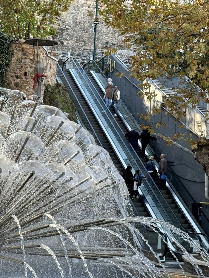 Город стоит на холмах, поэтому ноги тут качаются сами собой. Но мэрия решила сжалиться над пешеходами. Зацените: древняя крепостная стена, которой сотни лет, и встроенный в ландшафт современный уличный эскалатор. Выглядит как киберпанк по-османски.