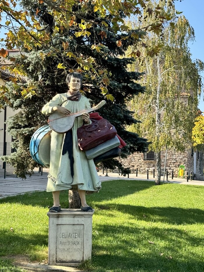 Бурса умеет удивлять. Иду по парку, стоит памятник женщине с барабанами и кучей сумок. Оказалось, это местная легенда — «Безумная Айтен» (Deli Ayten). Городская сумасшедшая, которую все любили. Она ходила по улицам, стучала в барабан и ругалась на прохожих. Когда она умерла, город решил увековечить её память. Душевно.