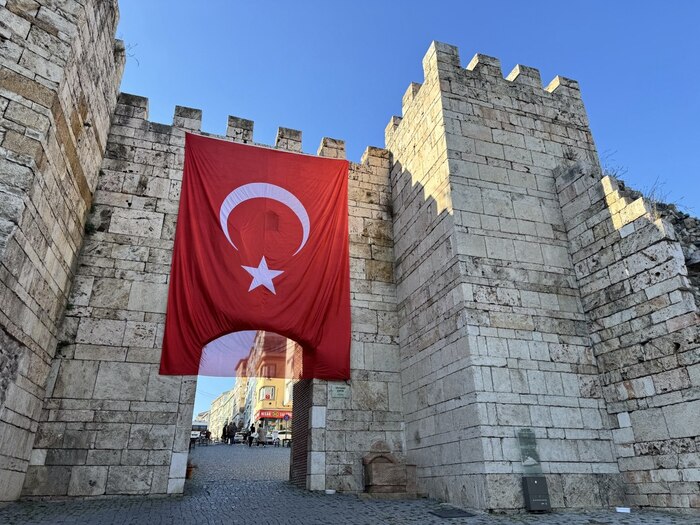 Истории тут — хоть лопатой греби. Это Врата Султаната. Флаг висит огромный, чтобы никто не забывал, откуда пошла Империя. У гробниц основателей (Османа и Орхана) стоит почетный караул. Ребята в исторических костюмах, с ятаганами, стоят не шелохнувшись. Смена караула — отдельное шоу.
