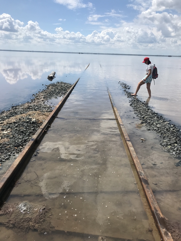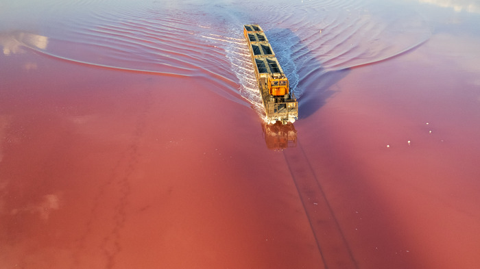 Поезд, который едет по розовому озеру