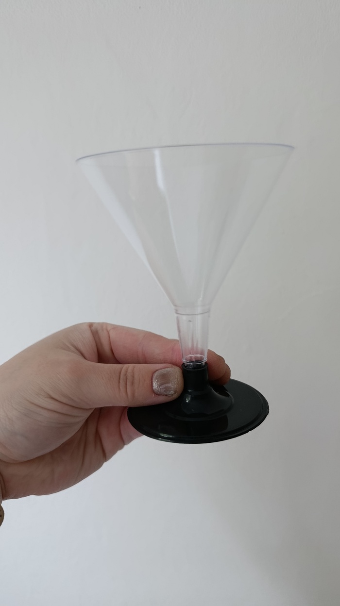 Понравилась мне она тем, что у нее есть крышка, из которой можно сообразить основание кубка. Чтобы это все соединить, я купила одноразовые пластиковые бокальчики.