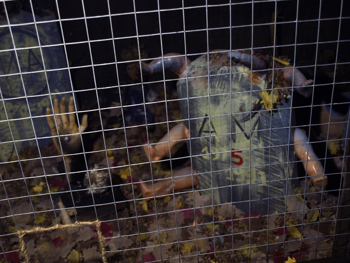 Доделывалась только голова, так как гипсовое тулово уже сидело на первом этаже. Ну и покраска, потому что белая гипсовая химера-альбинос это скучно. Теперь она черного золота.