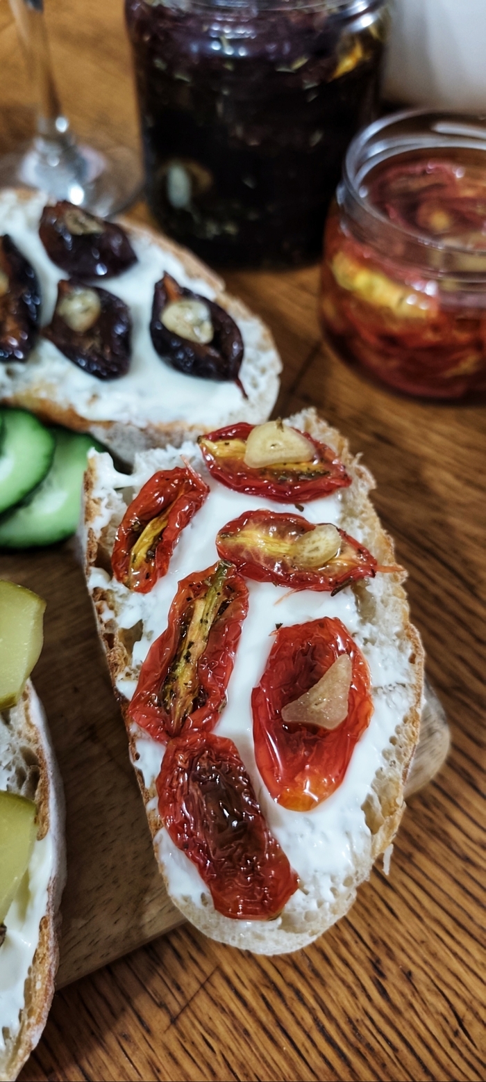 Но мои фавориты по прежнему вяленые томаты. Хлеб, творожный сыр и томаты - это идеальное сочетание🤌