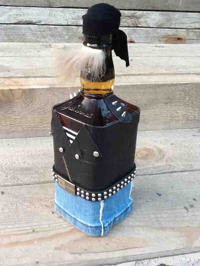 Как-то друг попросил оформить бутылку виски ему на свадьбу. Только попросил, чтоб она была не в стандартном исполнении жениха, а что - нибудь оригинальное. Так и появился байкер Джек)