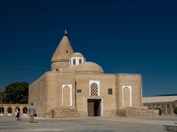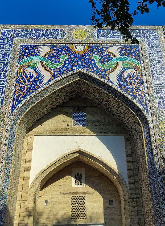 Далее мы двинули к мечети Хазрати Хизер. Но уже хотелось кушать, поэтому данной достопримечательности мы много времени не уделили. Но, в принципе, ничего в ней особенно интересного и нет. Отреставрированная в 2000-х, она, конечно, красива, но выглядит как новодел. Хотя первая мечеть на этом месте была возведена в 8 веке. По легенде, после взятия Самарканда арабы пытались затопить городскую крепость (калу), перекрыв плотиной канал. Но спустившаяся с неба огромная белая птица разрушила плотину и спасла город. В ознаменование этого события и была построена мечеть. В последний раз ее перестраивали в 19 веке. Сейчас на территории Хазрати Хизер построен мавзолей, в котором упокоился первый президент Узбекистана Ислам Каримов. Узбеки, кстати, очень тепло его вспоминают как реформатора и вообще, человека, очень много сделавшего для страны. По его указу была отреставрирована и Хазрати Хизер.