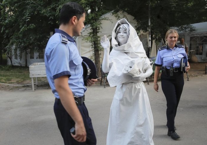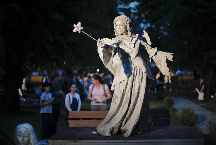 Международный фестиваль живых статуй прошел в Бухаресте, Румыния. Артисты в костюмах различных персонажей замирали в статических позах. Фестиваль, который является крупнейшим европейским мероприятием такого рода, направлен на изменение восприятия артформы как профессии, а не развлечения, связанного с любителями или попрошайками.