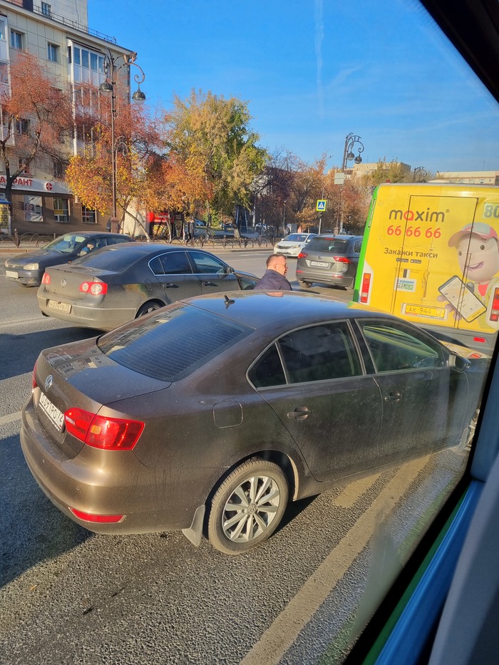 "Сегодня пассажиры тюменской маршрутки в 9-08 по тюменскому времени стали свидетелями как на улице Республики, недоезжая перекрестка с профсоюзной в пробке водитель автомобиля (госномер ниже) выскочил разбираться с водителем маршрутки "на хуях" за то что тот его "не пропустил", причем в ряд для общественного транспорта. Надо отдать должное, что водитель реагировал на оскорбления спокойно (водитель был русским) сказал в конце что "ты не прав ведь и ведешь себя как козел" после чего очевидно закрыл окно и в дальнейшим монологе водителя не участвовал, тот повозмущался еще и сел в машину. Что за творожок в голове? Ну не прав же по всем ПДД и еще права качает!! Пассажиры однозначно поддержали водителя, а один высказался, что лучше выйти и " научить ездить водятла"!