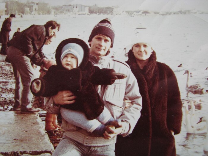 Это примерно 85 или 86-й год, отец служит срочку, бравый десантник-разведчик. Примерно тогда же знакомится с мамой.