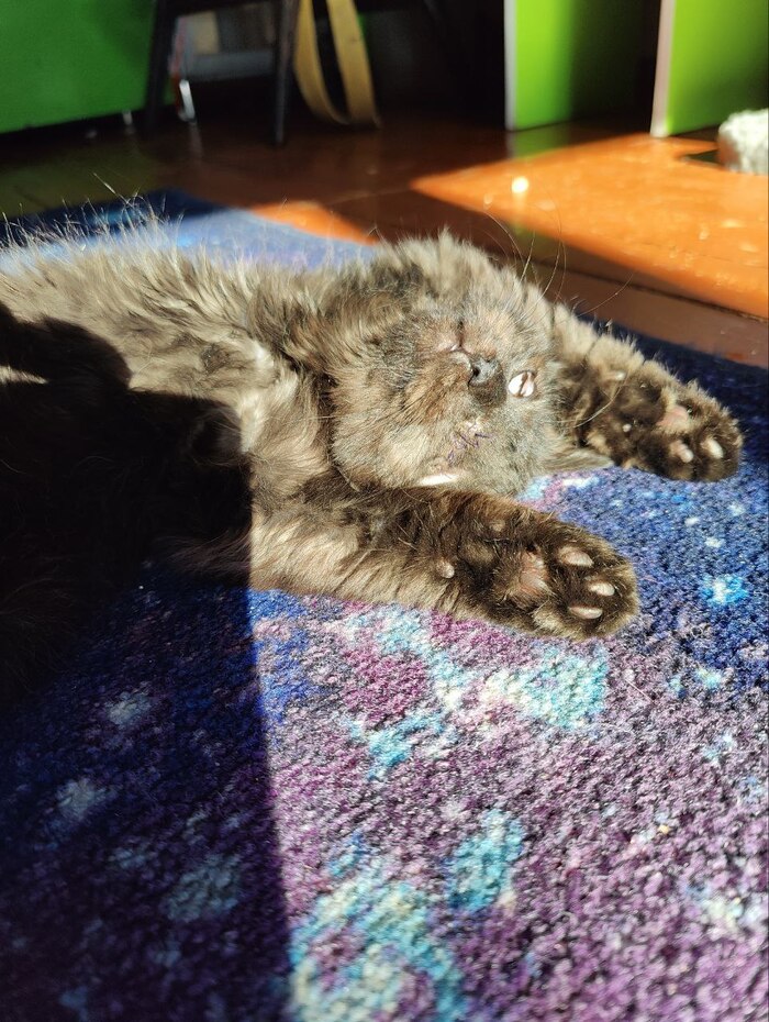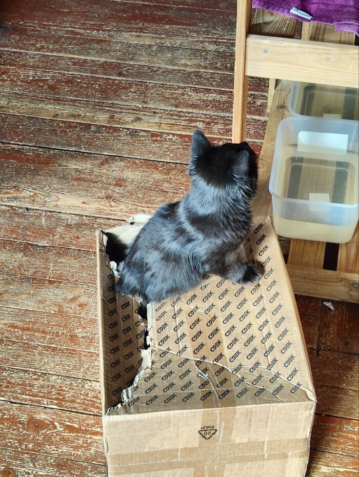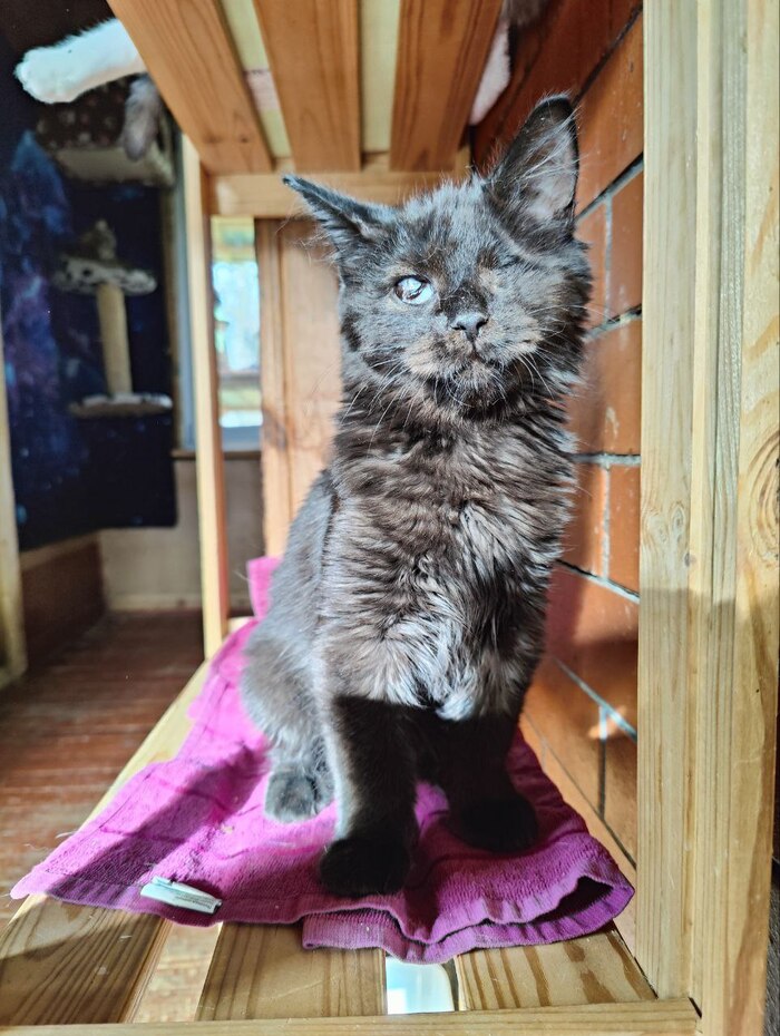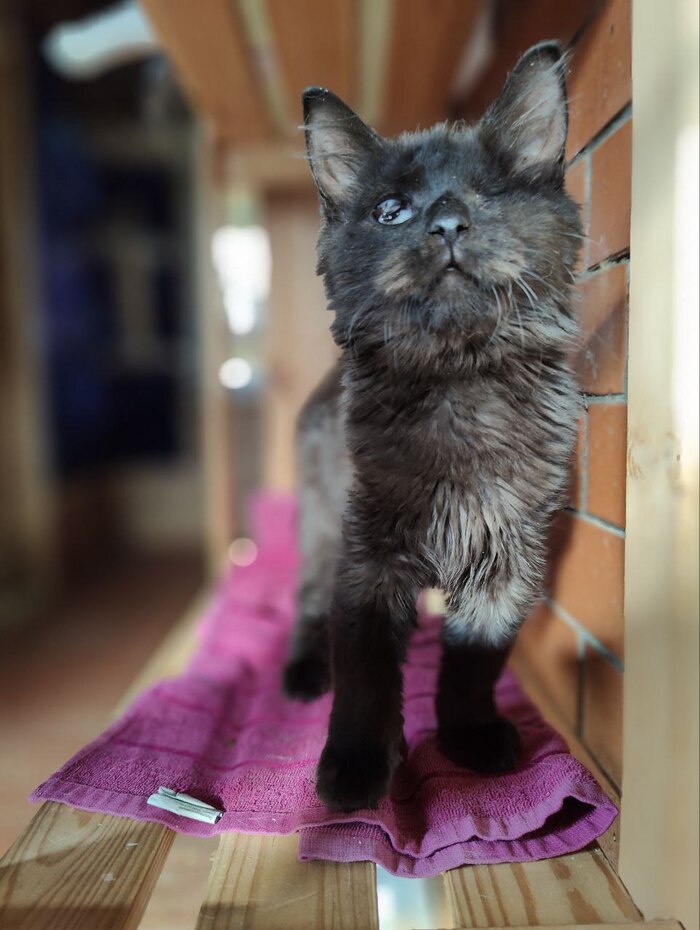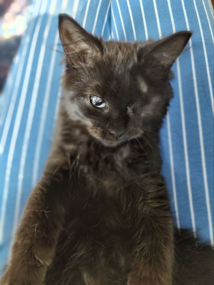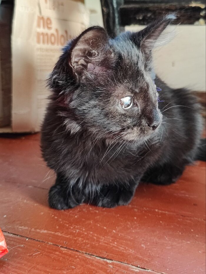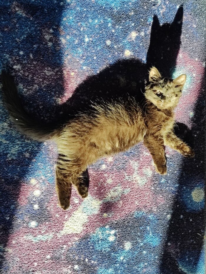 Морковный подлиза, наверное, думает, что у него кличка - Морковкин, блин/бл**ь. Я постоянно об него спотыкаюсь, так как он за секунду укладывается у моих ног даже, если я, например, мою посуду. Несколько раз я уже падала из-за него. Если вы обратились внимание, он весь жирной шерстью - это из-за того, что я постоянно его убираю с себя, с ног, с шеи, с головы (а руки часто намазаны кремом). Он постоянно тыкается мне в лицо и очень сильно бодается. У меня нечасто бывают такие котята. Даже Дарк была не такая, хотя у нее вообще не было глаз. И при этом, Морковкин с лёгкостью даст мне по руке и заурчит, если я даю ему мясо или рыбу. Короче говоря, характер ещё тот.