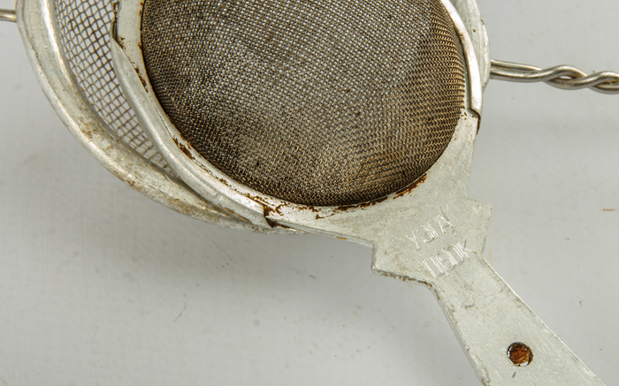 Ситечки. Нижнее имеет клеймо УЗГА - Уральский Завод Гражданской Авиации. Полностью отмыть сложно - щелочные средства отлично убирают чайный налет, но жрут алюминий(