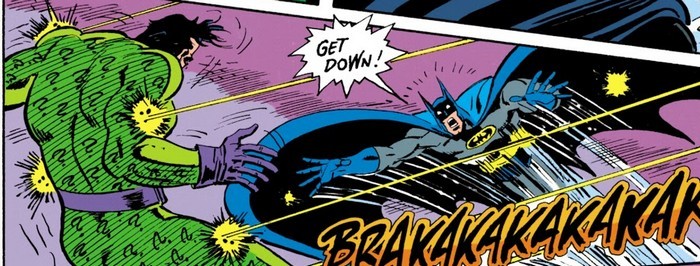 Сегодня в посте будет легендарочка, но потом, а начать предлагаю с комикса Batman #489 за февраль 1993 года, с историей от Дуга Мюнха и рисунком от Джима Апаро. Начинается комикс с тоски Убийцы Крока. Его тревожат видения из прошлого, воспоминания о том, как его с детства гнобили за уродливую, крокодилистую внешность. А теперь его разум ещё и затуманивает животная ярость, и Крок пускается во все тяжкие, громя всё на своём пути в одном из районов Готэма. А Брюс Уэйн в это время посещает доктора Шондру Кинсольвинг, с теми же проблемами, что и раньше – он постоянно чувствует себя измотанным, а отдохнуть не удаётся вообще никак, весь сон – «моргнул-выморгнул». Шондра настаивает, что это всё психосоматика. И приписывает Брюсу снотворное. Вернувшись домой, Брюс кушает таблетки и ложится спать.