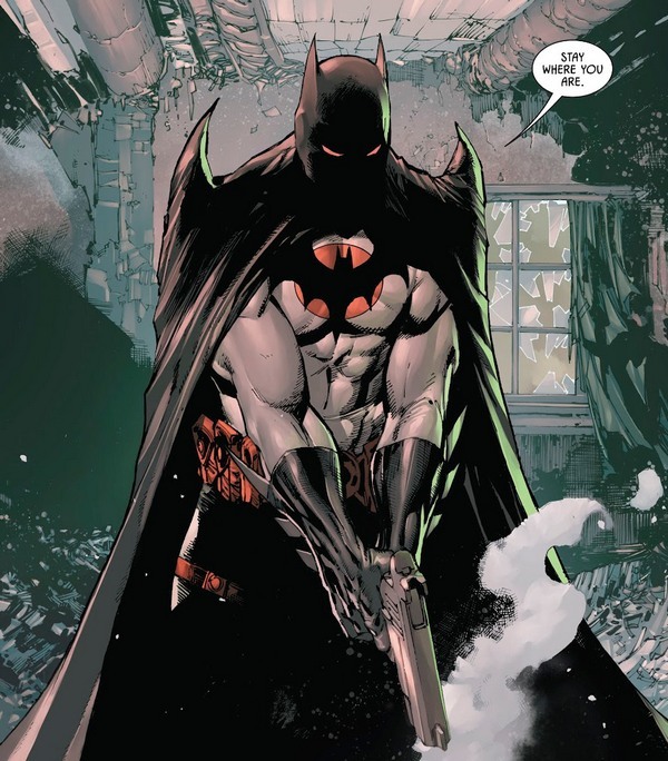 Сегодняшняя поездка начнётся с комикса Batman #71 за июль 2019 года, с историей от Тома Кинга и рисунком от Майкла Джейнина и Хорхе Форнеса. Не слушая гневные крики и предупреждения Джима Гордона, Бэтмэн заявляется на крышу полицейского участка и включает Бэтсигнал, предварительно вкрутив в него красную лампочку. Ну, это было “тогда”. Сейчас же Бэтмэн сидит, весь такой приунывший, в Бэтпещере, под вопли системы оповещения о том, что на территорию проник незваный гость. Затем тоскливо надевает шлем и поднимается в поместье. А Барбара Гордон, Бэтгёрл, узнаёт о красном Бэтсигнале и оповещает остальных членов Бэт-Семьи. Тима Дрейка (Робина), который сейчас в компании Титанов противостоит Самуроидам, Елену Бертинелли (Охотницу), Дэмиена Уэйна (Робина), Кэтрин Кейн (Бэтвумэн, но она находится в другой стране и прибудет нескоро), Кассандру Кейн (Сироту), Дюка Томаса (Сигнала, он поначалу отказывается, но узнав, что это был КРАСНЫЙ Бэтсигнал, соглашается). Стефани Браун (Спойлер) сигнал не приняла, Джейсон Тодд (Красный Клдпак) пообещал, что засунет ломик Брюсу в зад, а Дик Грейсон – Рик и вообще не Найтвинг.