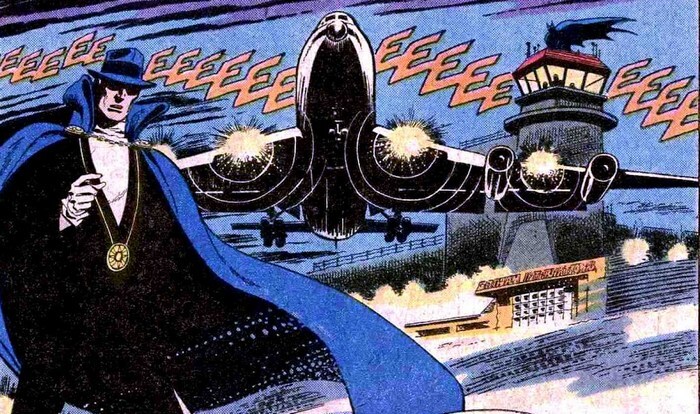 В общем, как-то отбрехавшись от Линды, Брюс берётся за расследование дела и вычисляет, что наверняка нападение на него как-то связано с исчезновением учёных. Бэтмэн также вычисляет, какого учёного могут похитить в следующий раз, и идёт дежурить у дома доктора Мейсона. И да, Дикер похищает Мейсона и уводит в подвал, где держит остальных учёных! Да только этим Мейсоном оказывается замаскированный Бэтмэн (он Мейсона подменил). Он вырывается и накидывает бандитам по голове, да ещё и Робин десантируется с Бэтсамолёта и подключается к веселью. После допроса с пристрастием Дикер раскрывает, что слегка доработал прибор Джона напильником, и теперь он не столько вынуждает говорить правду, сколько заставляет долбануться. А всё потому что Дикер – один из представителей пятой колонны, сторонник нацизма. И его начальники ждут отчёта, тусуясь на дирижабле. Бэтмэн и Робин поднимаются на борт дирижабля и устраивают там погром. Во время сражения вражеская пуля задевает баллон с водородом, и герои вовремя сваливают, а дирижабль со всем нацистами на борту взрывается!