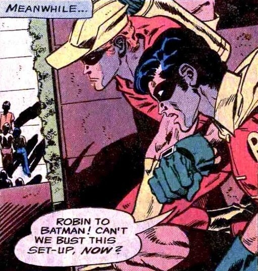 Динамическому Дуэту приходится разделиться. Пока Бэтмэн уводит полицейских подальше (на данный момент полиция пока что ещё не считает Бэтмэна главным другом и помощником), Робин продолжает погоню за Чертями с помощью реактивных роликовых коньков, но вот боевого опыта пацану пока не хватает, Черти накидывают ему по голове и кладут на рельсы. Но черти поленились Робина привязать, так что к моменту прибытия поезда малец перекладывается так, чтобы поезд проехал над ним. А вскоре прибывает Бэтмэн, герои вычисляют следующую цель Чертей, встречают банду и накидывают ей чертовски качественных люлей. И оставляют бандитов связанными до прибытия полиции.